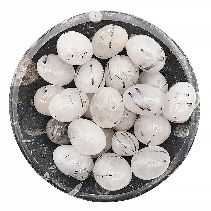 Pierre roulée cristal de roche tourmaline AA 30 à 40mm (lot 200g)
