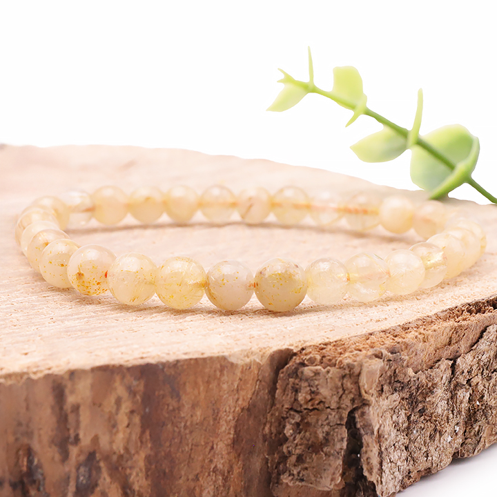 Bracelet boule 06mm cristal de roche rutile AB