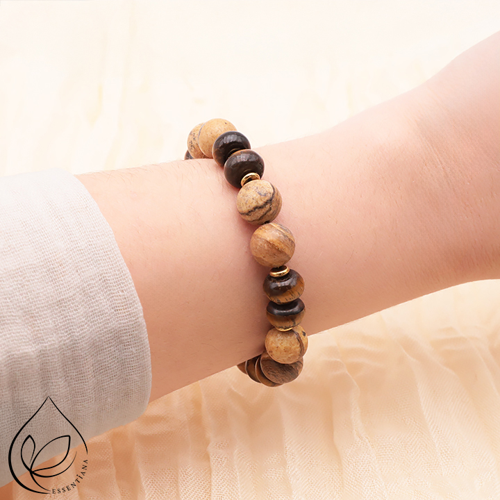 Bracelet Alba doré jaspe paysage, oeil de tigre A