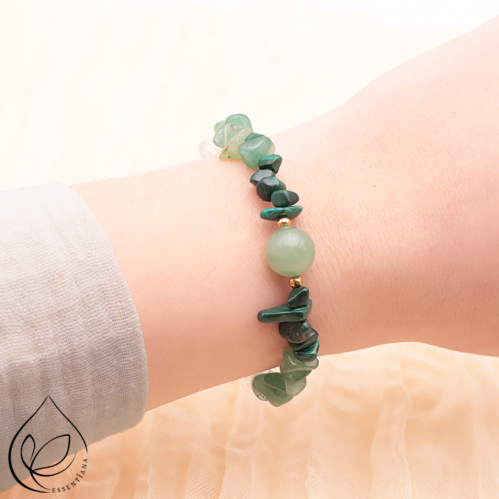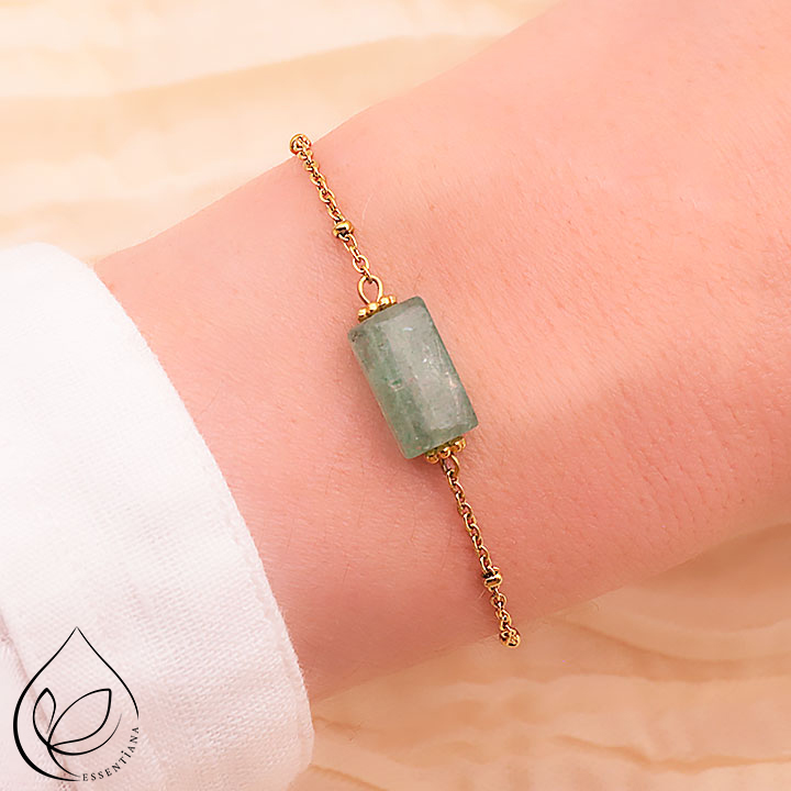 Bracelet Calysta doré cristal de roche, aventurine verte, malachite A