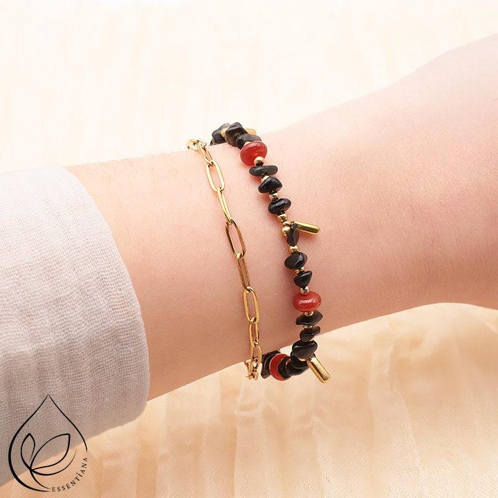 Bracelet Sothis doré cornaline, obsidienne noire A