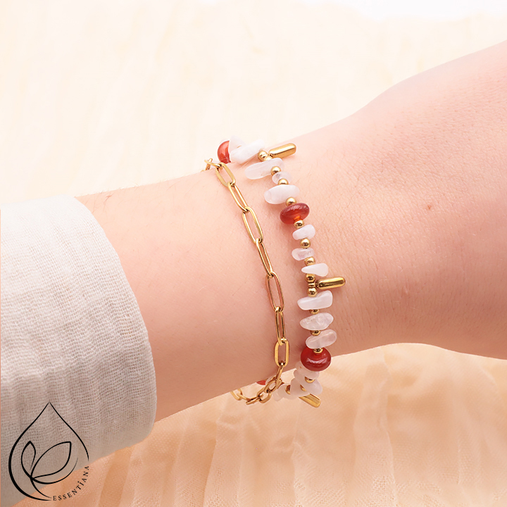 Bracelet Sothis doré cornaline, pierre de lune beige AA