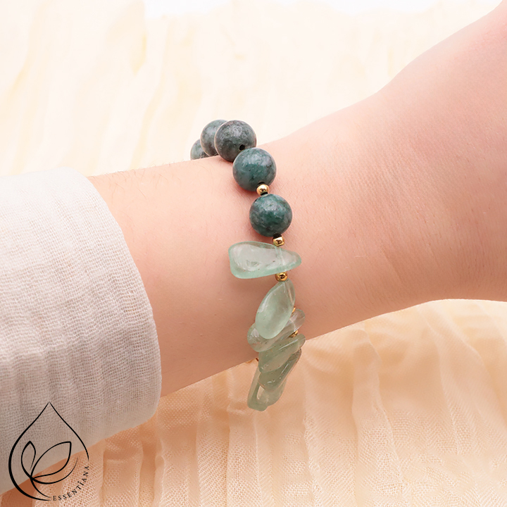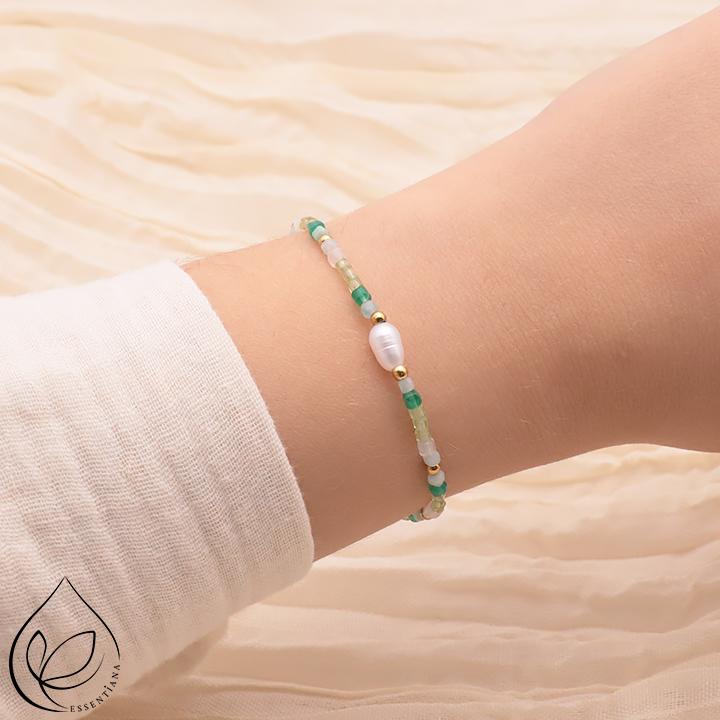 Bracelet Vaya doré perle d'eau douce, agate verte A