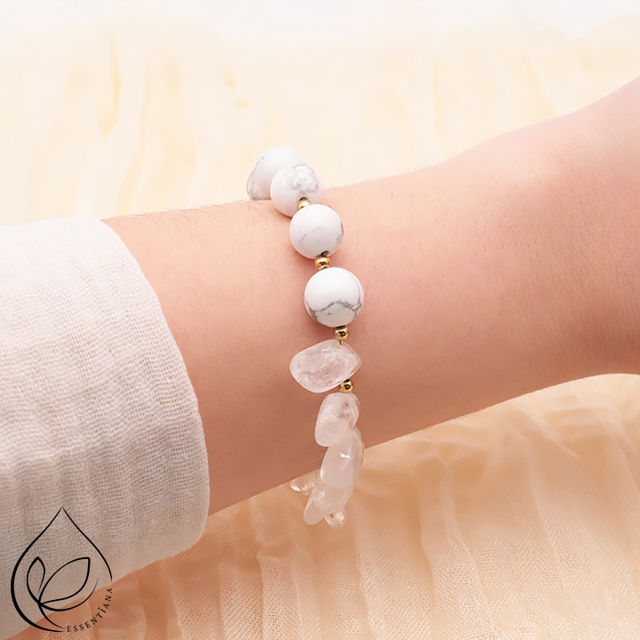 Bracelet Zafya doré cristal de roche, howlite blanche A