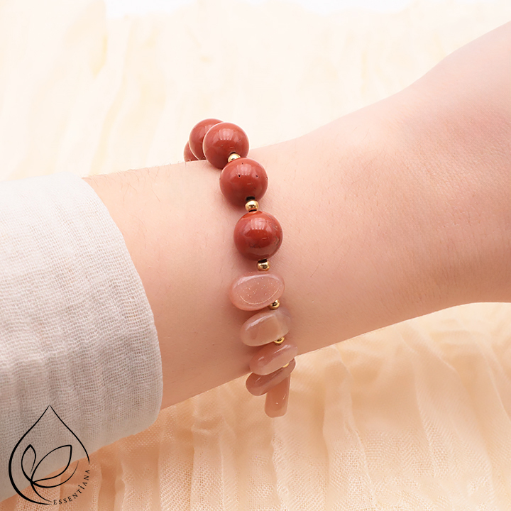 Bracelet Zafya doré pierre de lune rose, jaspe rouge A
