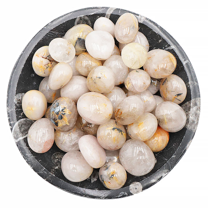 Pierre roulée cristal de roche rutile tourmaline A+ 15 à 30mm (lot 200g)
