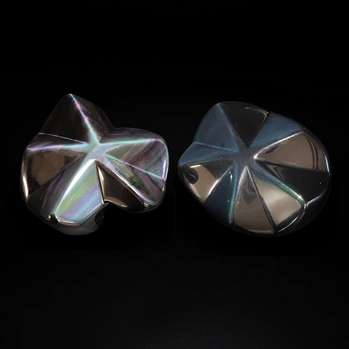 Galet coeur 25 à 35mm obsidienne oeil céleste AA (lot 3 pièces)