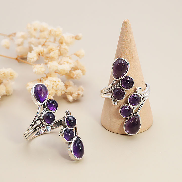 Bague argent 925 modèle 01 améthyste Brésil AA (1 pièce) lot N°1A0525