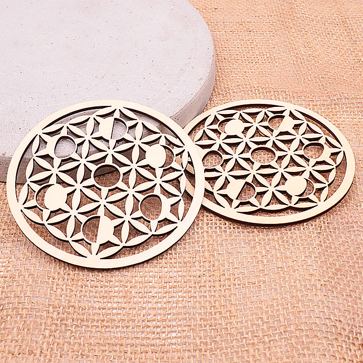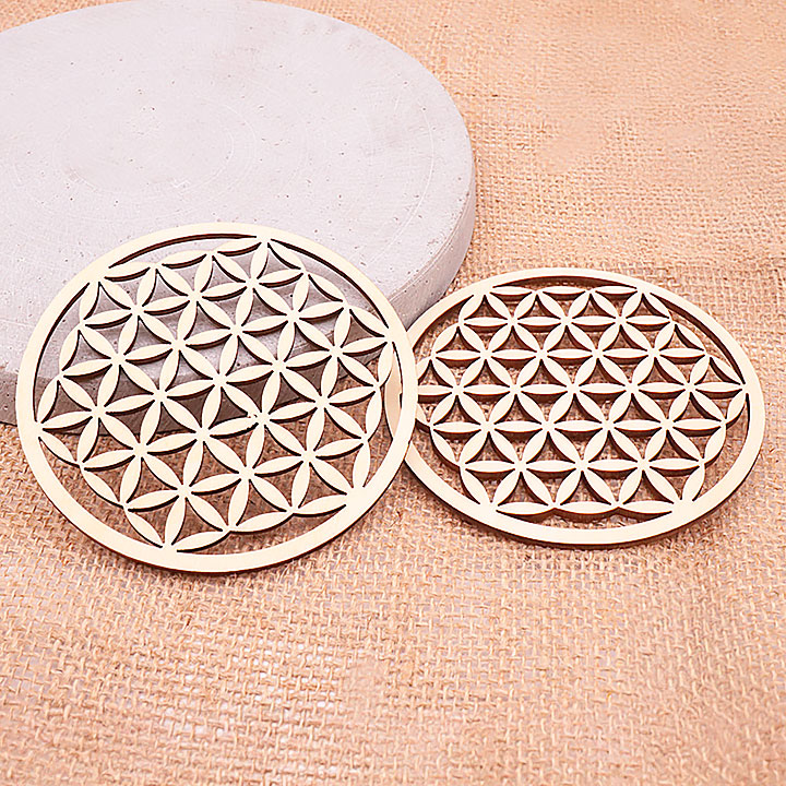 Plaque bois modèle 26 fleur de vie pleine creuse 200mm (lot 2 pièces)