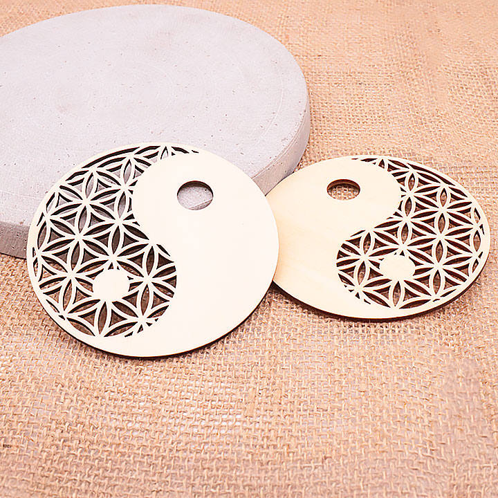 Plaque bois modèle 05 fleur de vie creuse / yin yang 100mm (lot 3 pièces)