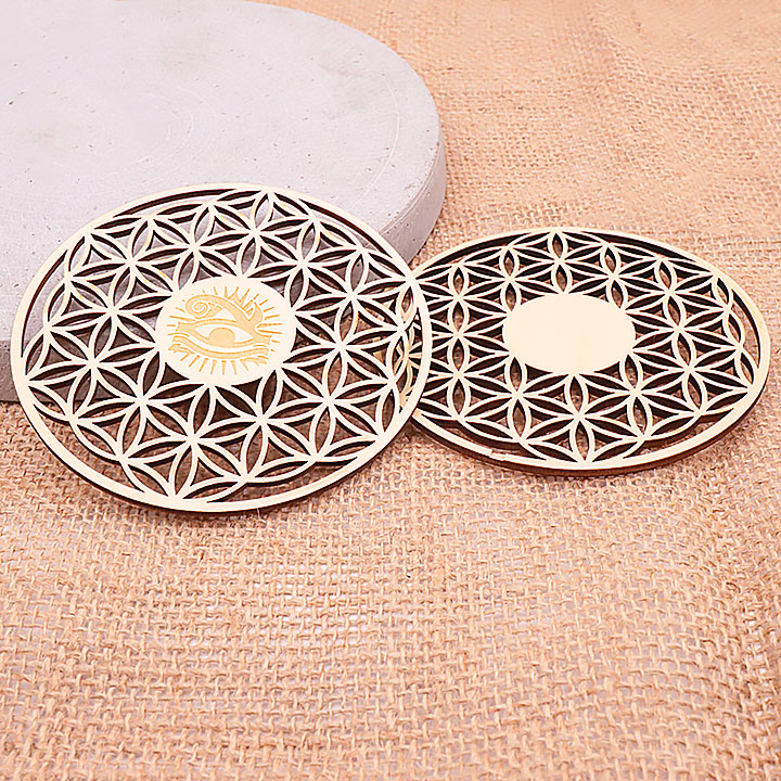 Plaque bois modèle 06 fleur de vie creuse découpée / oeil d'horus 100mm (lot 3 pièces)