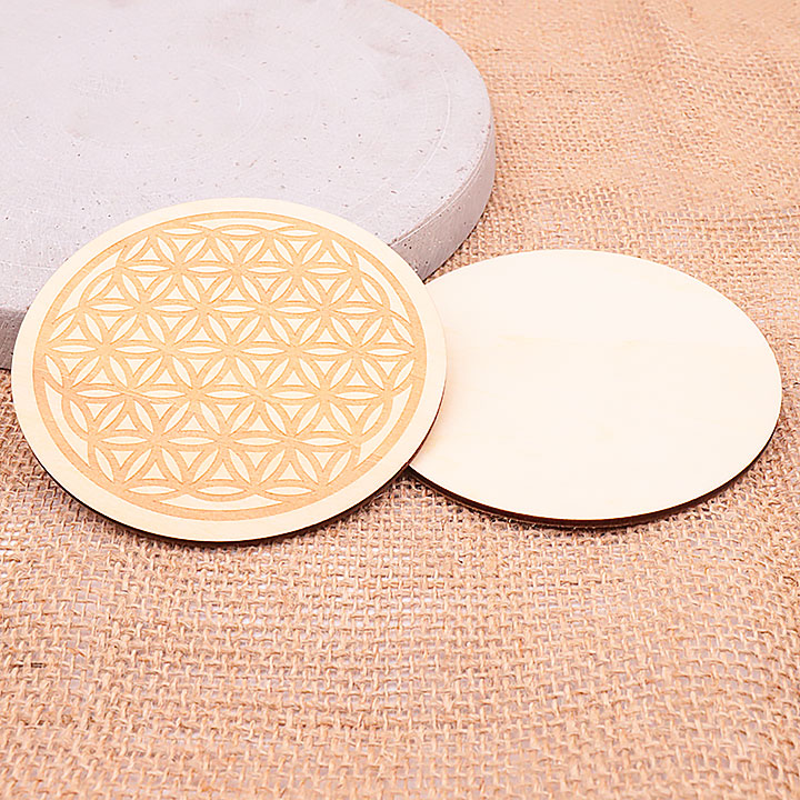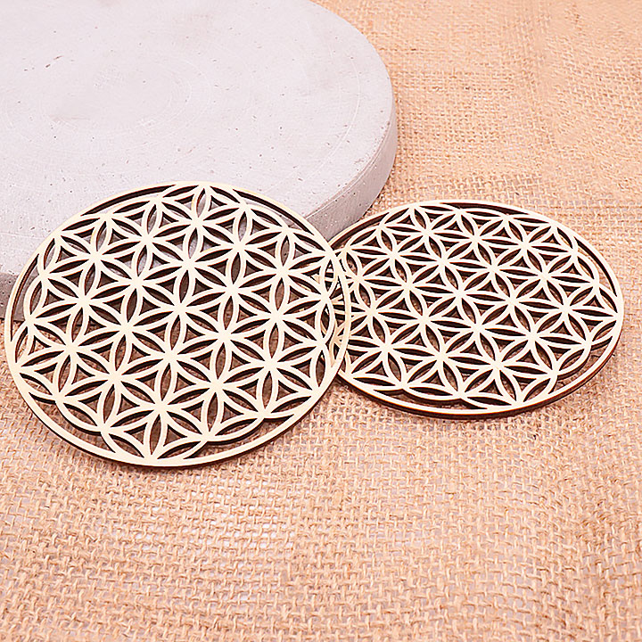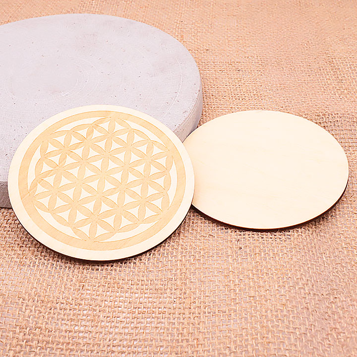 Plaque bois modèle 08 fleur de vie creuse gravée 100mm (lot 3 pièces)