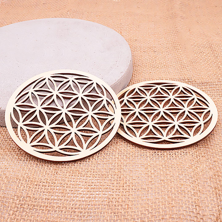 Plaque bois modèle 25 fleur de vie pleine creuse 150mm (lot 3 pièces)