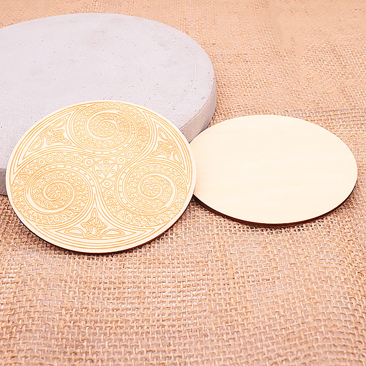 Plaque bois modèle 19 symbole triskele arabesque gravée 100mm (lot 3 pièces)