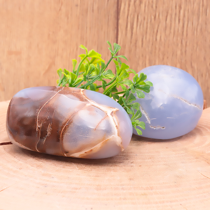Galet calcédoine bleue sur gangue AAA 175 à 200g (1 pièce)