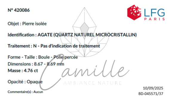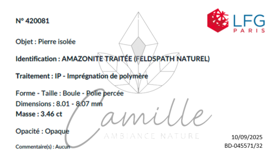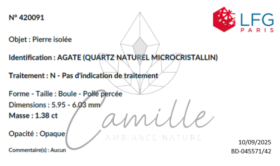 Lors de nos divers arrivages de minéraux, nous sélectionnons un ou plusieurs échantillons parmi l'ensemble d'un même lot, et le(s) soumettons au LGF pour analyse. Nous avons adopté cette méthode de travail afin d'assurer un maximum de sécurité quant à la qualité et l'authenticité de nos pierres. Nous tenons à préciser, qu'au vu des coûts d'analyse, il est évidemment impossible de faire expertiser chacune des pierres ou perles vendues. Cependant cette méthode d'expertise nous permet un contrôle régulier qui favorise la sincérité de nos fournisseurs et la confiance de nos clients.