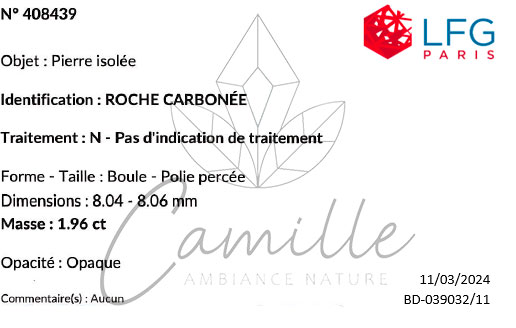 Lors de nos divers arrivages de minéraux, nous sélectionnons un ou plusieurs échantillons parmi l'ensemble d'un même lot, et le(s) soumettons au LGF pour analyse. Nous avons adopté cette méthode de travail afin d'assurer un maximum de sécurité quant à la qualité et l'authenticité de nos pierres. Nous tenons à préciser, qu'au vu des coûts d'analyse, il est évidemment impossible de faire expertiser chacune des pierres ou perles vendues. Cependant cette méthode d'expertise nous permet un contrôle régulier qui favorise la sincérité de nos fournisseurs et la confiance de nos clients.